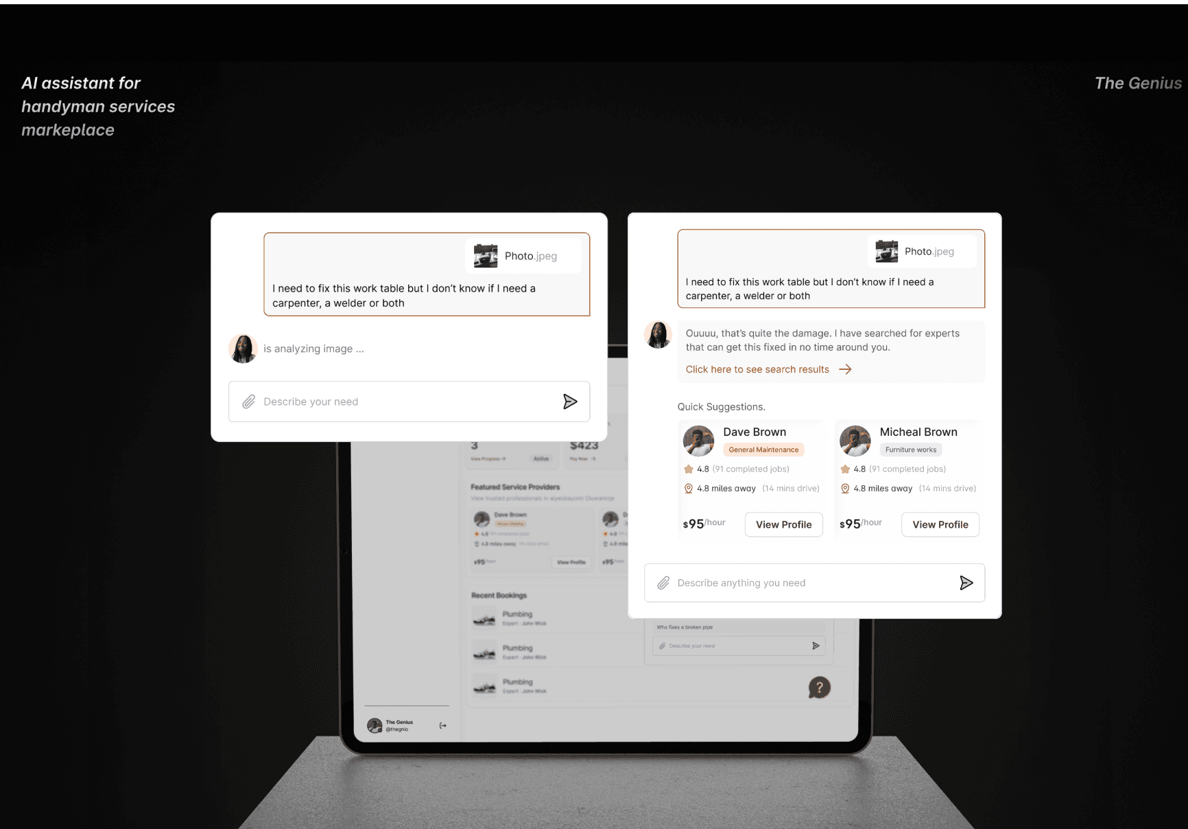 Web App for Handyman a service marketplace for around the house needs. Integrated an AI