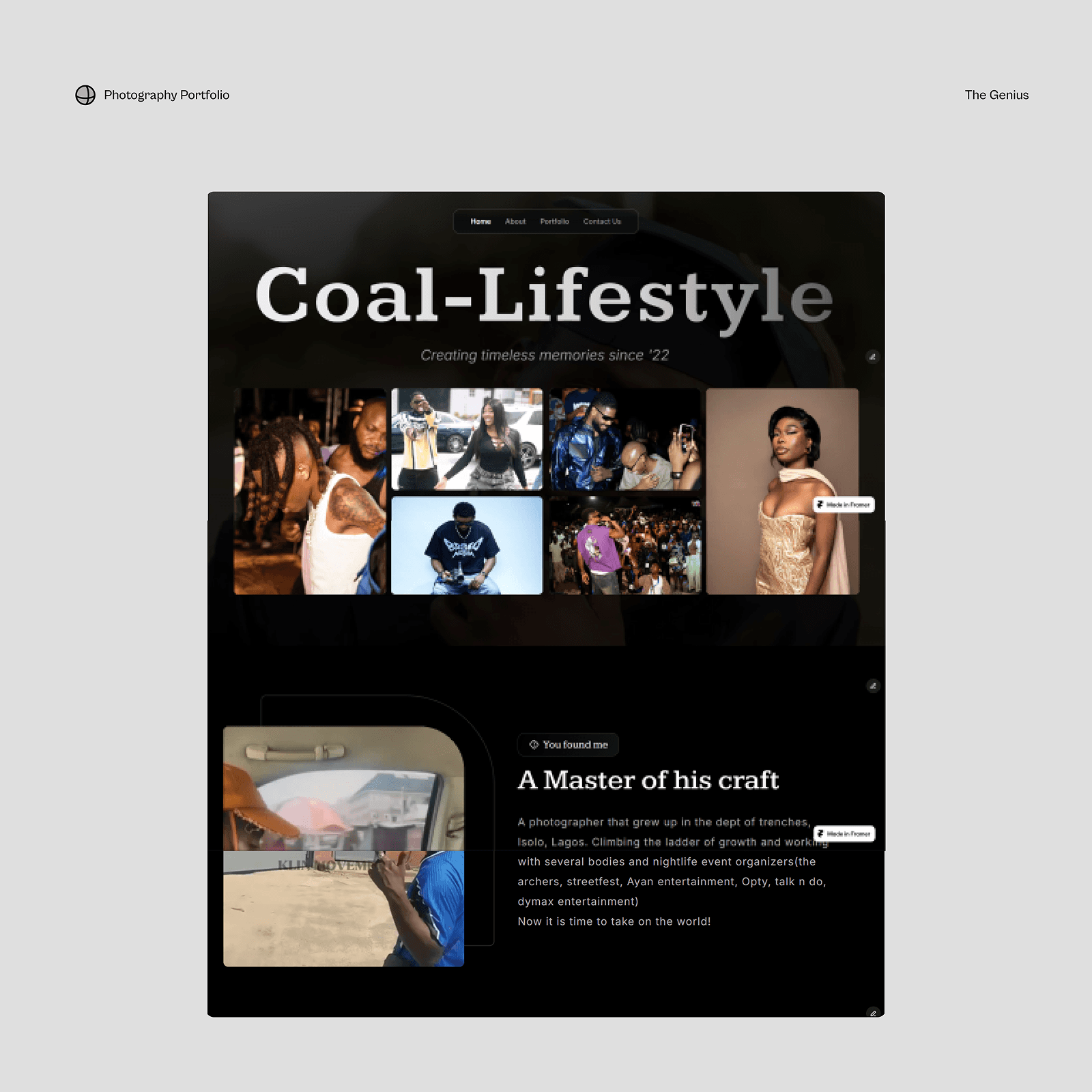 Website Design for Coal Lifestyle a phography portfolio to express the expertise of Coal's skill for potentia, clients.